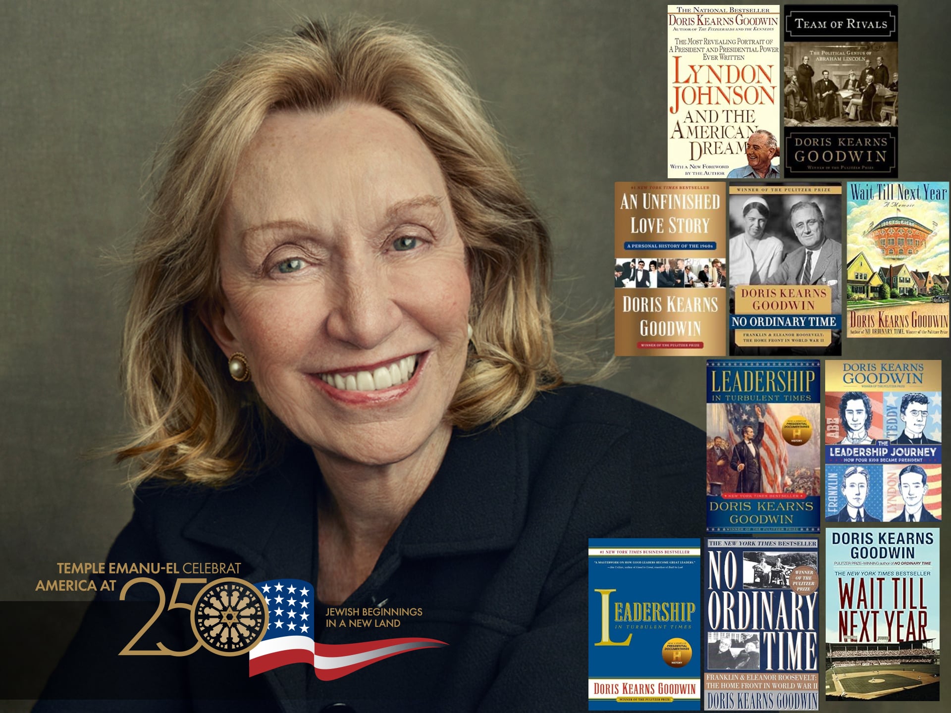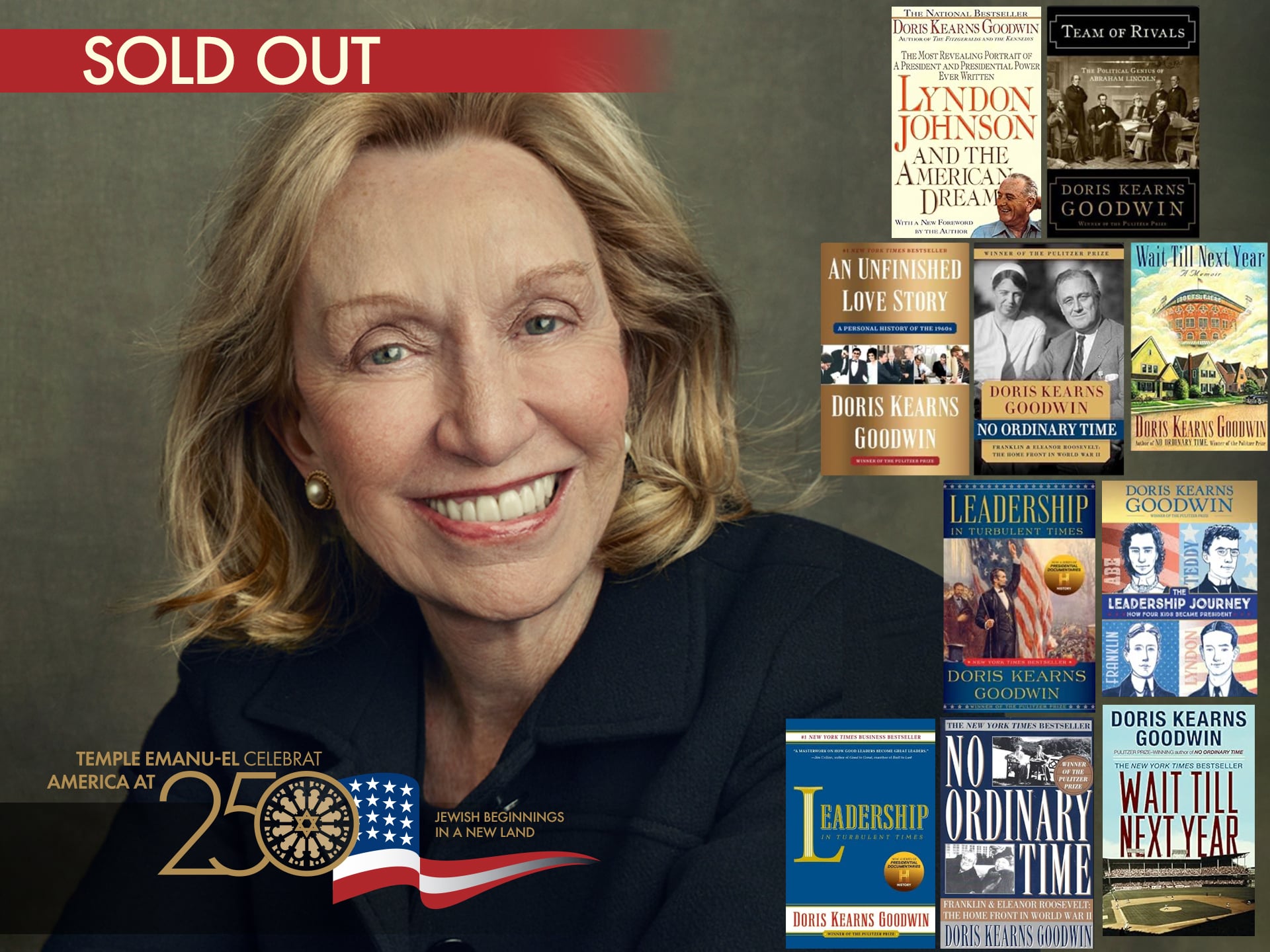 The Temple Emanu-El Streicker Cultural Center is proud to invite you to an evening of history, stories and wine with renowned historian Dr. Doris Kearns Goodwin, inaugurating our yearlong Semiquincentennial celebration.